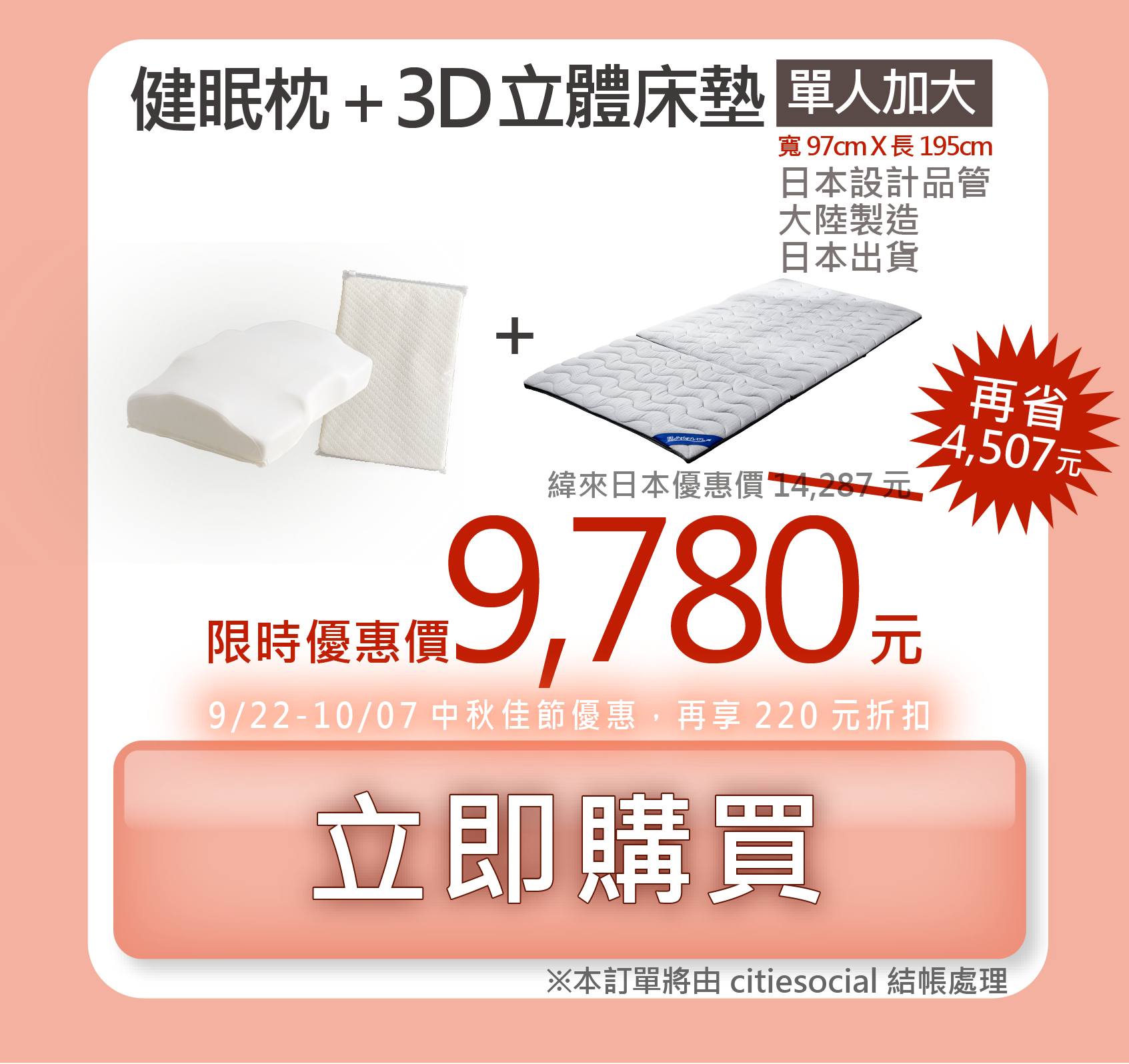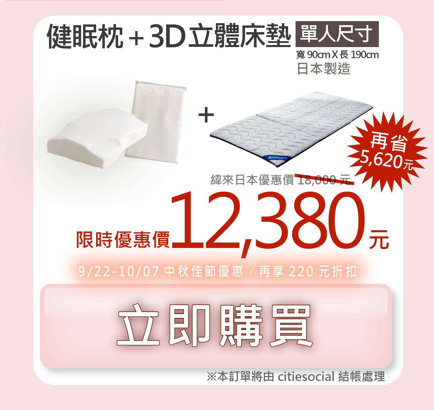 健眠枕+3D立體健眠床墊【緯來日本獨家販售】